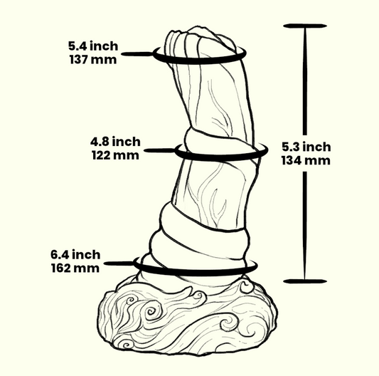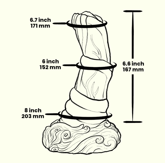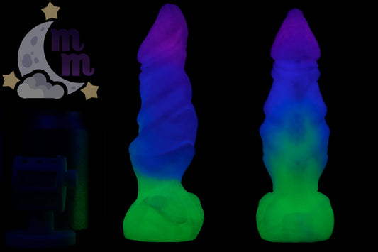 This was my first purchase from midnight menagerie- who I met on a shared discord server. I took a look around the site, very well crafted and organized. it was quite easy to locate the model I was interested in- Which was the Loakahn! I got my Loakahn off the pre-made tab, a large premade Loakahn in soft (00-30); It came faster than expected in the mail and upon opening the box, I was met with an note sealed with a wax seal- Which is such a cool touch!! Gently cracking open wax seal trying not to damage it was difficult but I managed it! The contents of the note was details of my Loakahn. revealing the toy, I found that the pictures don't do the large Loakahn justice- This beast is as long as my forearm- From elbow to wrist. Its 10 inches at max circumference- very textured and *very* fun to use as a pretend stick shift of a racecar when joking around. The Loakahn I got is beautiful- a very subtle grey, mint, and vanilla marbled swirl and to my excitement- Not too phallic looking! All in all, I would recommend having this model in your collection- The sculpting, pouring, color combination choice, etc., is astounding! 10/10, One of my centerpieces of my collection!!!