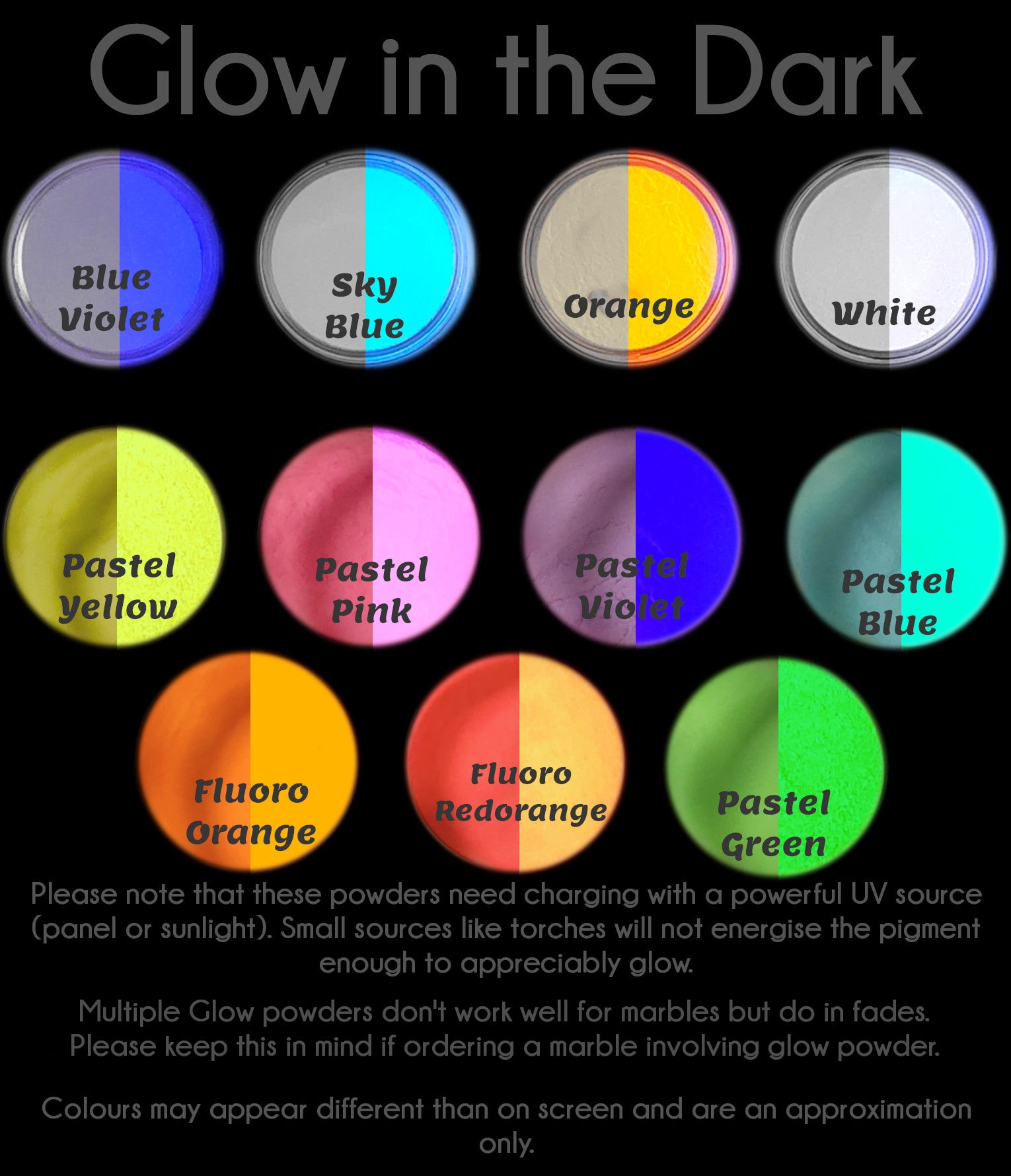 Opaque (non-UV) colours can be combined to produce many colours. Should you desire a custom palette, enter "custom palette" in the colour selection box and we will contact you for further details.