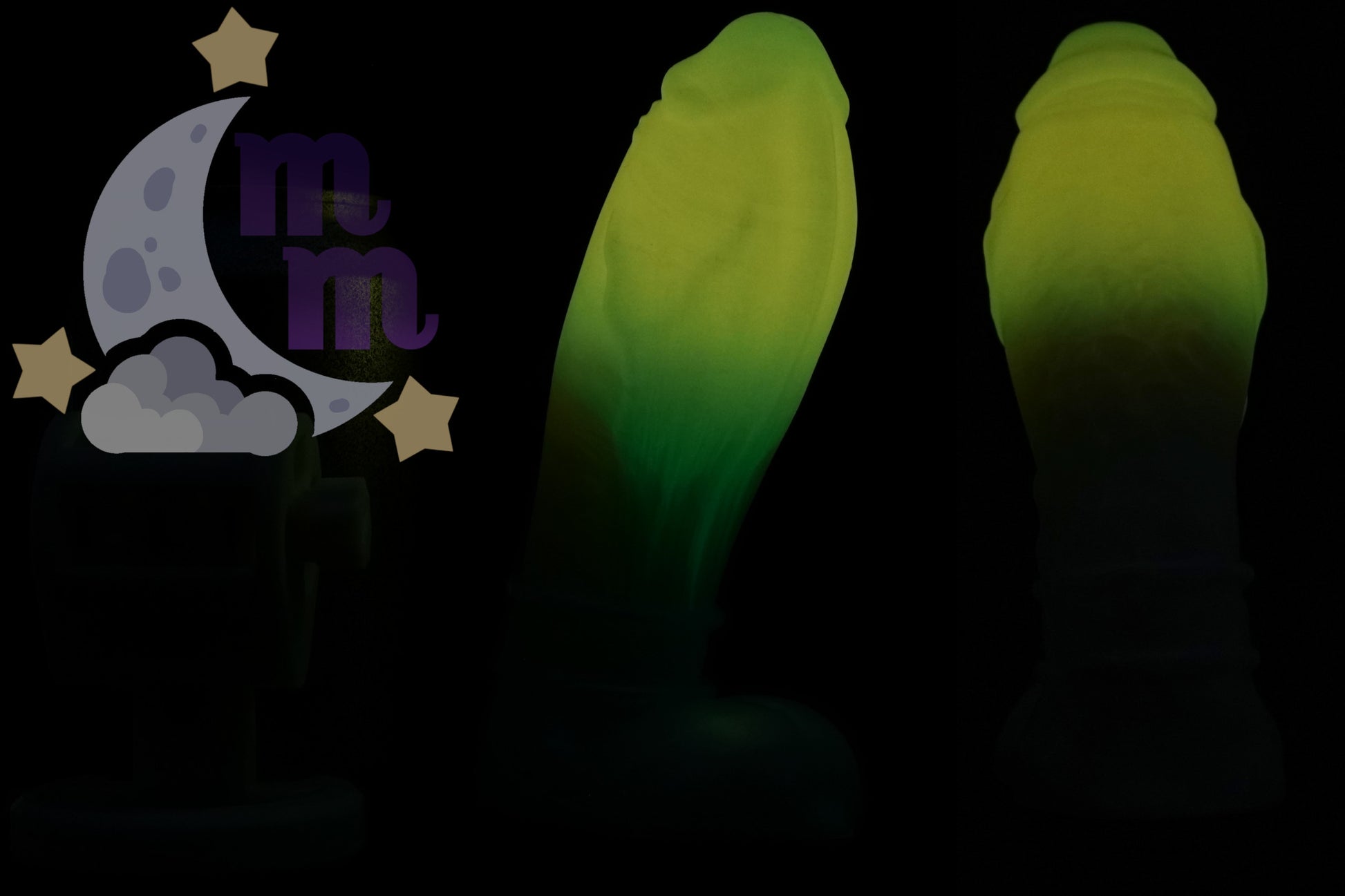 Item is coloured in yellow glow-in-the-dark fade to satin white mica.