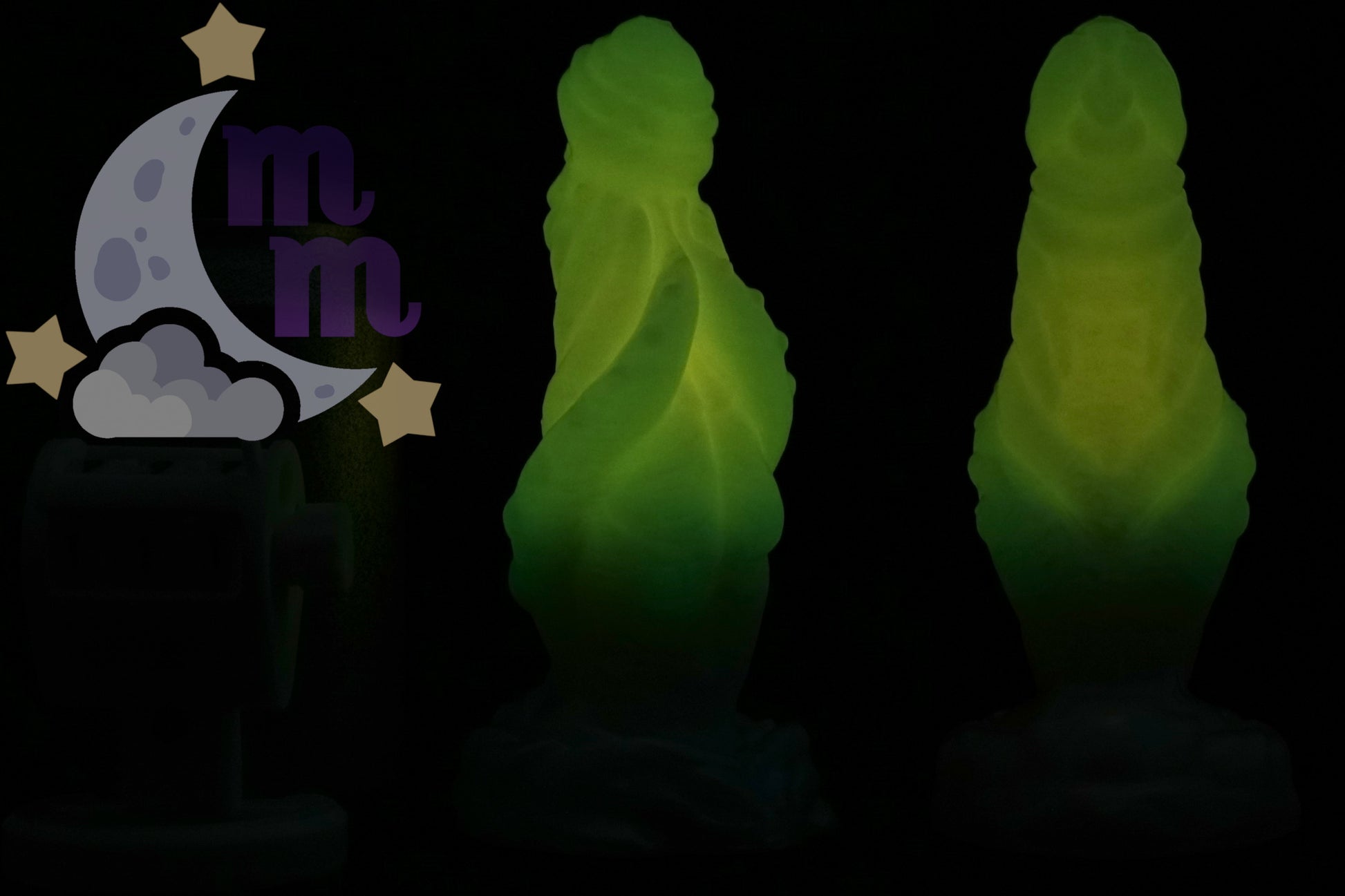 Item is coloured in yellow glow-in-the-dark fade to satin white mica.