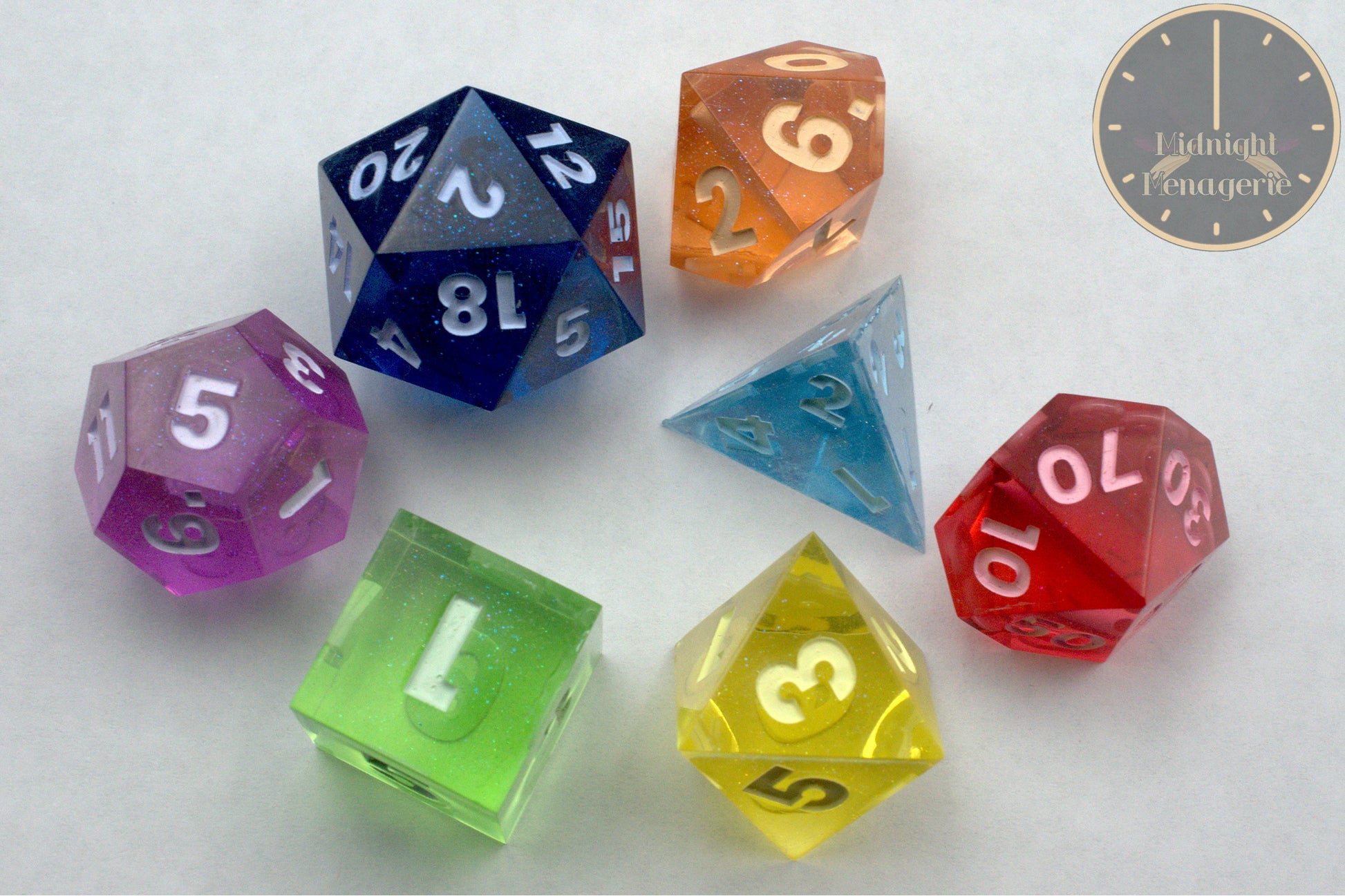 Rainbow RPG 7-die handmade sharp edged resin polyhedral dice set 6